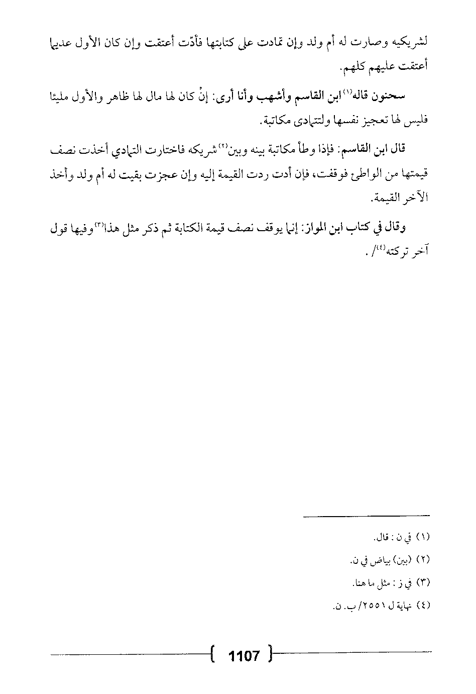 وقال في كتاب ابن المواز: إنما يوقف نصف قيمة الكتابة ثم ذكر مثل هذا وفيها قول آخر تركته/.