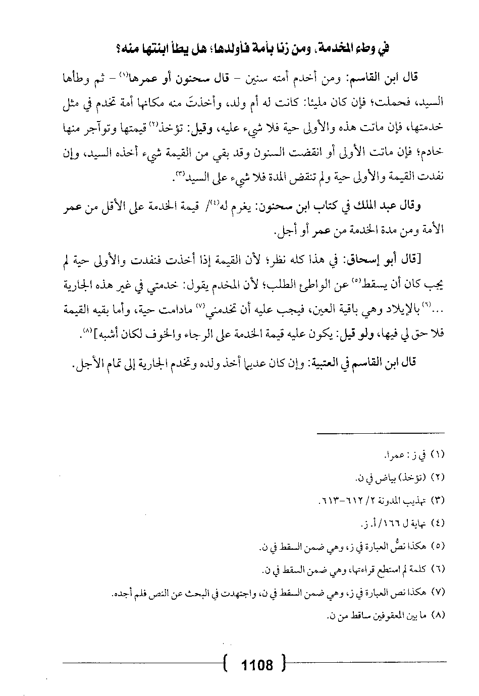 في وطء المخدمة، ومن زنا بأمة فأولدها؛ هل يطأ ابنتها منه؟