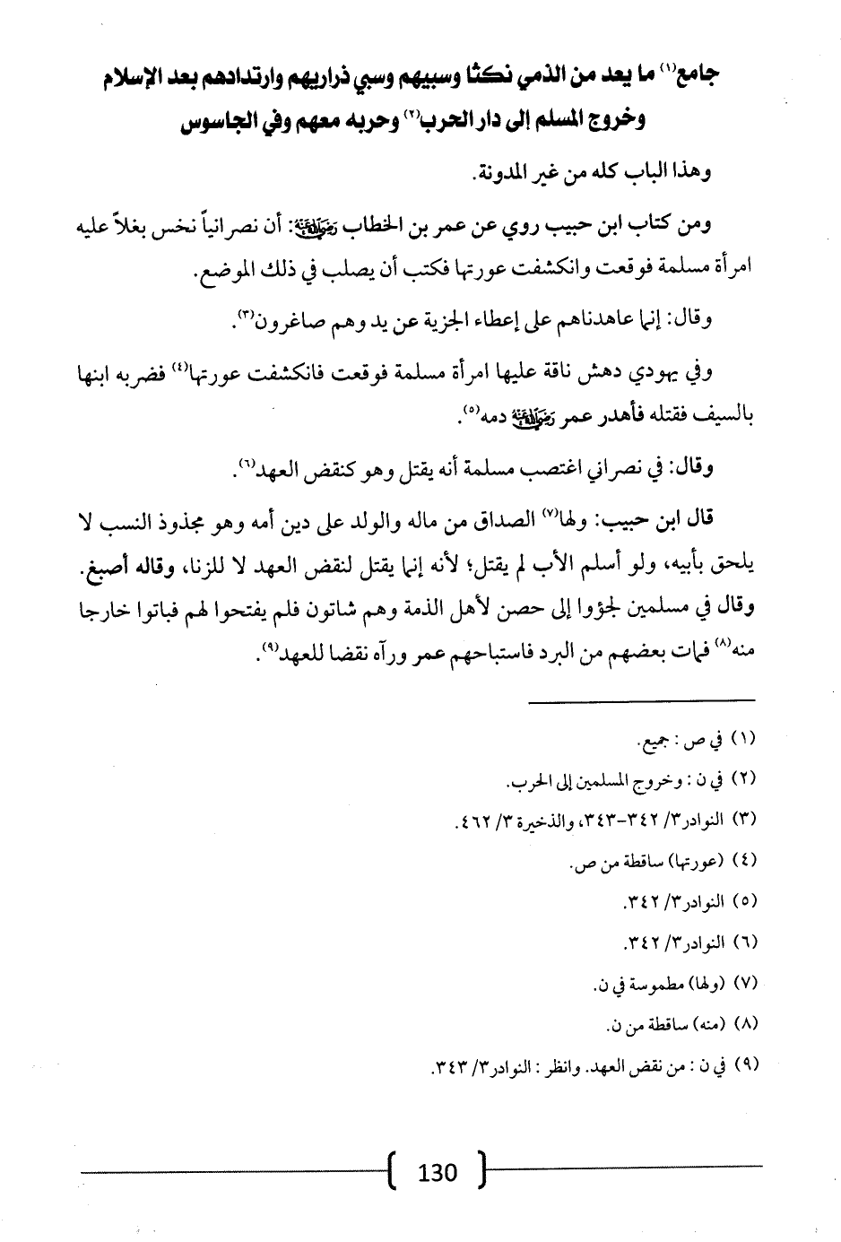 جامع ما يعد من الذمي نكثاً وسبيهم وسبي ذراريهم وارتدادهم بعد الإسلام