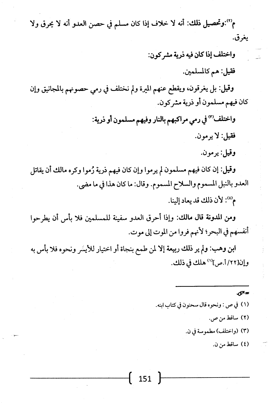واختلف في رمي مراكبهم بالنار وفيهم مسلمون أو ذرية: