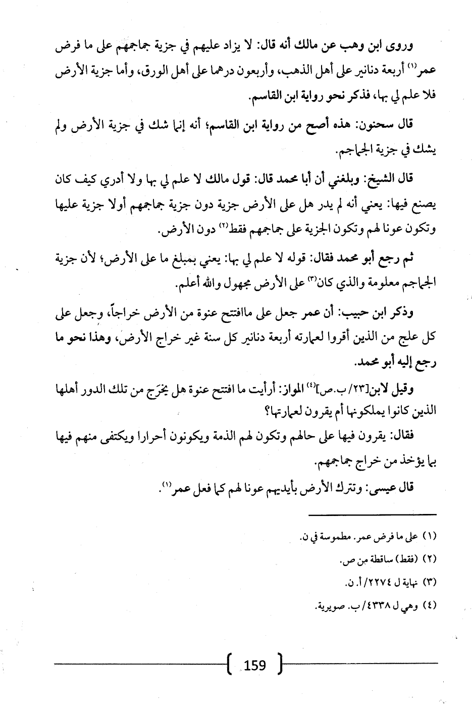 قال الشيخ: وبلغني أن أبا محمد قال: قول مالك لا علم لي بها ولا أدري كيف كان يصنع فيها: يعني أنه لم يدر هل على الأرض جزية دون جزية جماجمهم أو لا جزية عليها وتكون عوناً لهم وتكون الجزية على جماجمهم فقط دون الأرض.