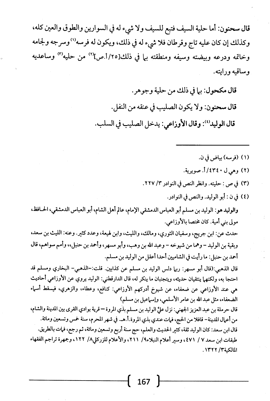 قال سحنون: أما حلية السيف فتبع للسيف ولا شيء له في السوارين والطوق والعين كله، وكذلك إن كان عليه تاج وقرطان فلا شيء له في ذلك، يكون له فرسه وسرجه ولجامه وخاتمه ودرعه وبيضته وسيفه ومنطقته بما في ذلك من حليه وساعديه وساقيه ورايته.
