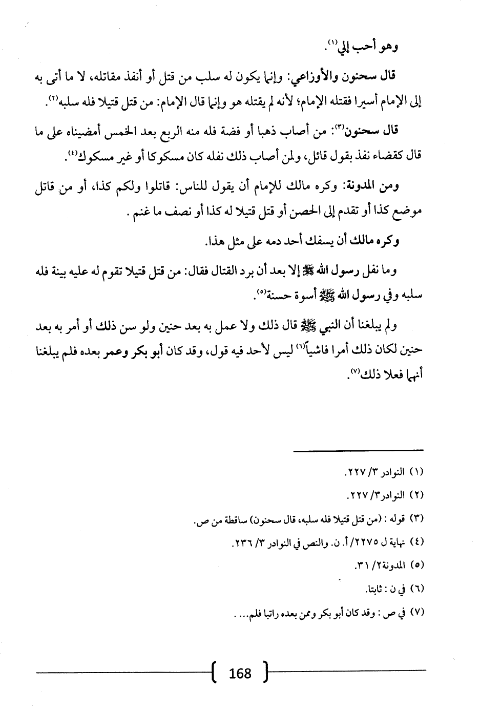 ولم يبلغنا أن النبي -صلى الله عليه وسلم- قال ذلك ولا عمل به بعد حنين ولو سن ذلك أو أمر به بعد حنين لكان ذلك أمراً فاشياً ليس لأحد فيه قول، وقد كان أبو بكر وعمر بعده فلم يبلغنا أنهما فعلا ذلك.