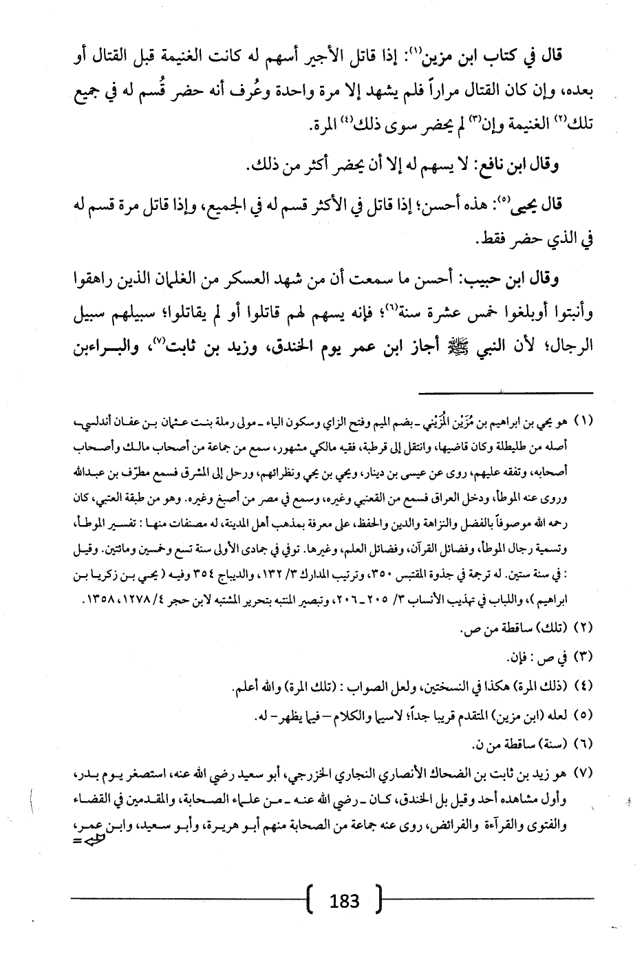 وقال ابن حبيب: أحسن ما سمعت أن من شهد العسكر من الغلمان الذين راهقوا وأنبتوا أو بلغوا خمس عشرة سنة؛ فإنه يسهم لهم قاتلوا أو لم يقاتلوا؛ سبيلهم سبيل الرجال؛ لأن النبي -صلى الله عليه وسلم- أجاز ابن عمر يوم الخندق، وزيد بن ثابت، والبراء بن