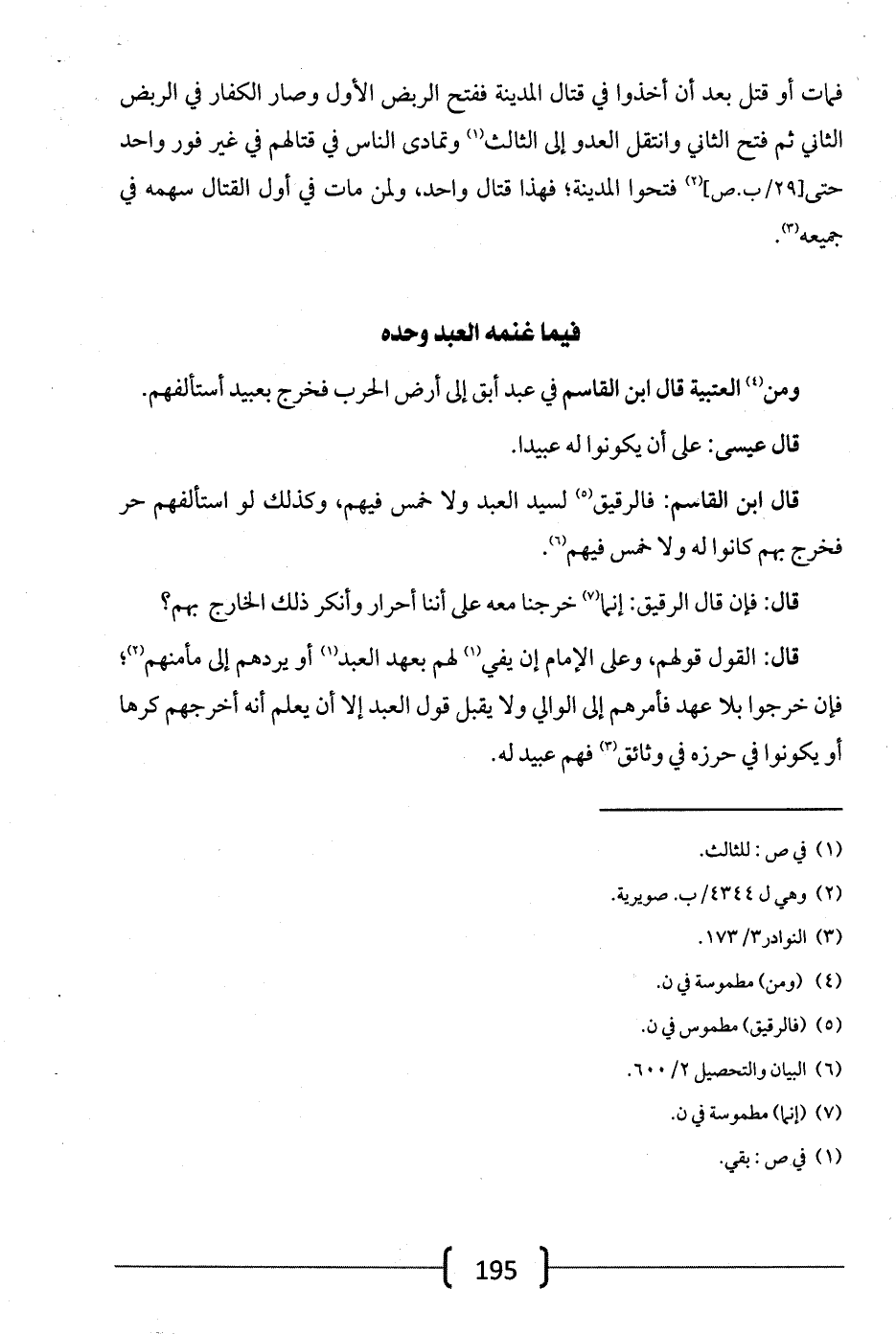 ومن العتبية قال ابن القاسم في عبد أبق إلى أرض الحرب فخرج بعبيد استألفهم.