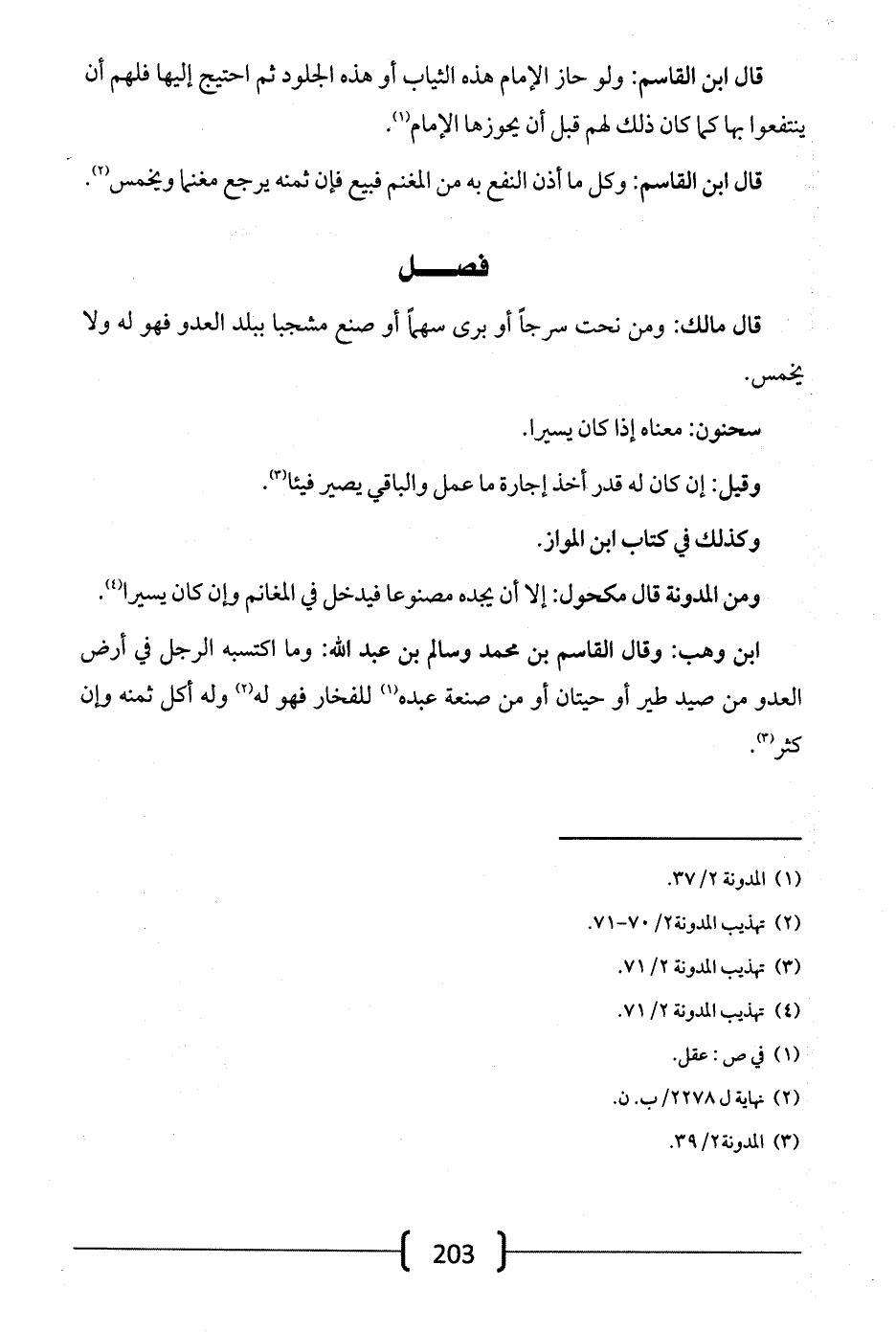ابن وهب: وقال القاسم بن محمد وسالم بن عبد الله: وما اكتسبه الرجل في أرض العدو من صيد طير أو حيتان أو من صنعة عبده للفخار فهو له وله أكل ثمنه وإن كثر.