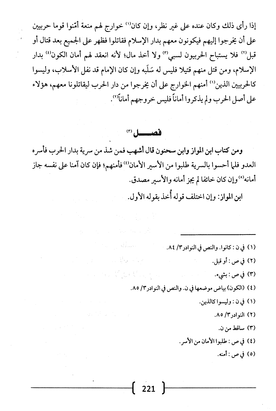 إذا رأى ذلك وكان عنده على غير نظر، وإن كان خوارج لهم منعة أمنوا قوماً حربيين على أن يخرجوا إليهم فيكونون معهم بدار الإسلام فقاتلوا فظهر على الجميع بعد قتال أو قبل فلا يستباح الحربيون لسبي ولا أخذ مال؛ لأنه انعقد لهم أمان الكون بدار الإسلام، ومن قتل منهم قتيلاً فليس له سلبه وإن كان الإمام قد نقل الأسلاب، وليسوا كالحربيين الذين أمنهم الخوارج على أن يخرجوا من دار الحرب ليقاتلونا معهم، هؤلاء على أصل الحرب ولم يذكروا أماناً فليس خروجهم أماناً.