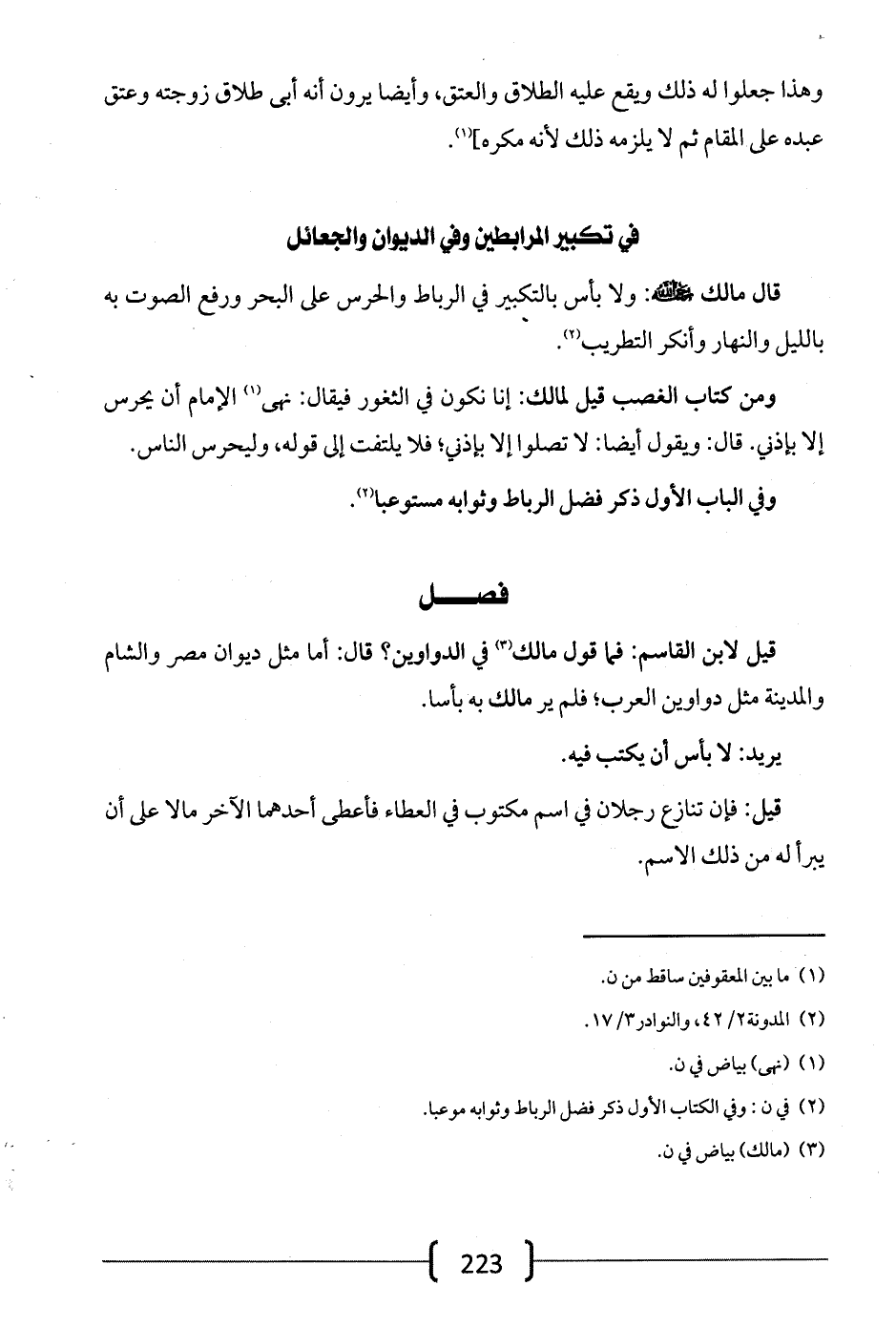 قيل لابن القاسم: فما قول مالك في الدواوين؟ قال: أما مثل ديوان مصر والشام والمدينة مثل دواوين العرب؛ فلم ير مالك به بأساً.