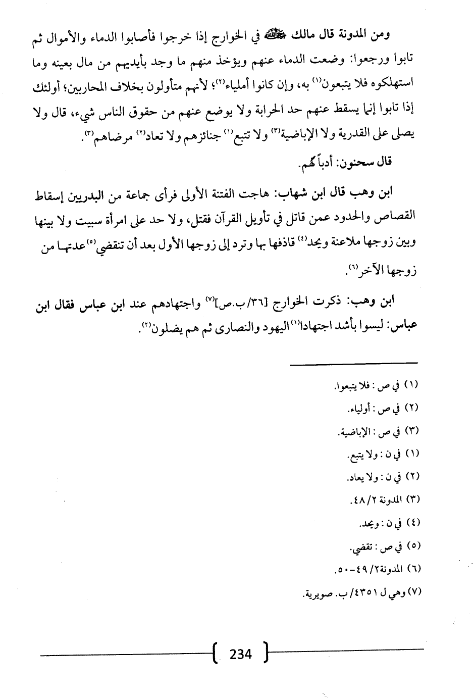 ابن وهب: ذكرت الخوارج واجتهادهم عند ابن عباس فقال ابن عباس: ليسوا بأشد اجتهاداً اليهود والنصارى ثم هم يضلون.