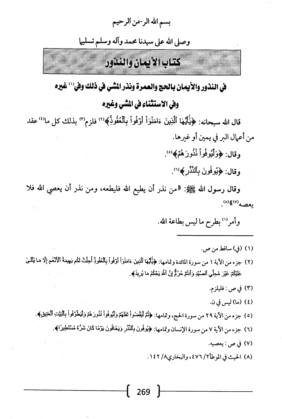في النذور والأيمان بالحج والعمرة ونذر المشي في ذلك وفي غيره