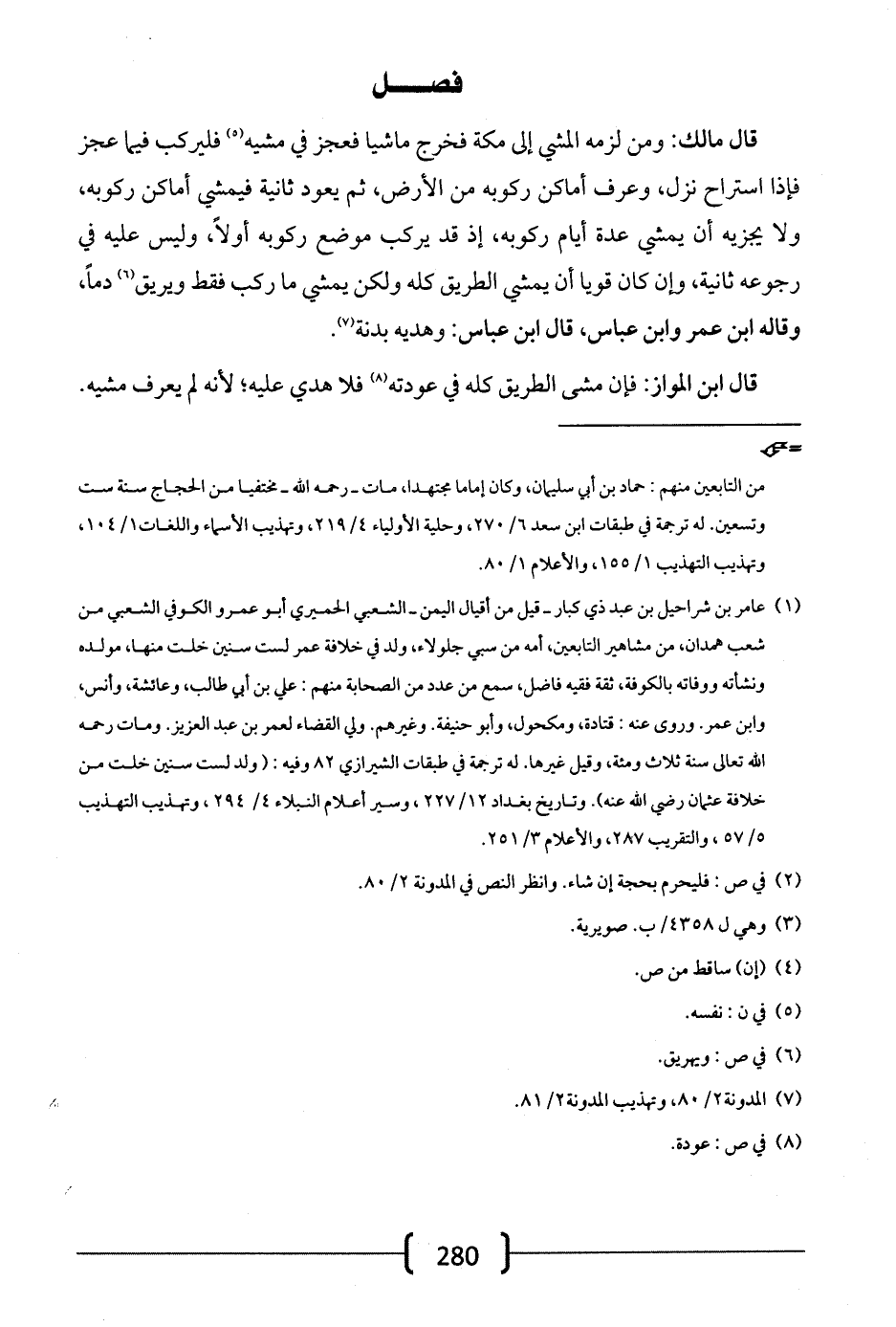 قال مالك: ومن لزمه المشي إلى مكة فخرج ماشياً فعجز في مشيه فليركب فيما عجز فإذا استراح نزل، وعرف أماكن ركوبه من الأرض، ثم يعود ثانية فيمشى أماكن ركوبه، ولا يجزيه أن يمشي عدة أيام ركوبه، إذ قد يركب موضع ركوبه أولاً، وليس عليه في رجوعه ثانية، وإن كان قوياً أن يمشي الطريق كله ولكني يمشي ما ركب فقط ويريق دماً، وقاله ابن عمر وابن عباس، قال ابن عباس: وهديه بدنة.