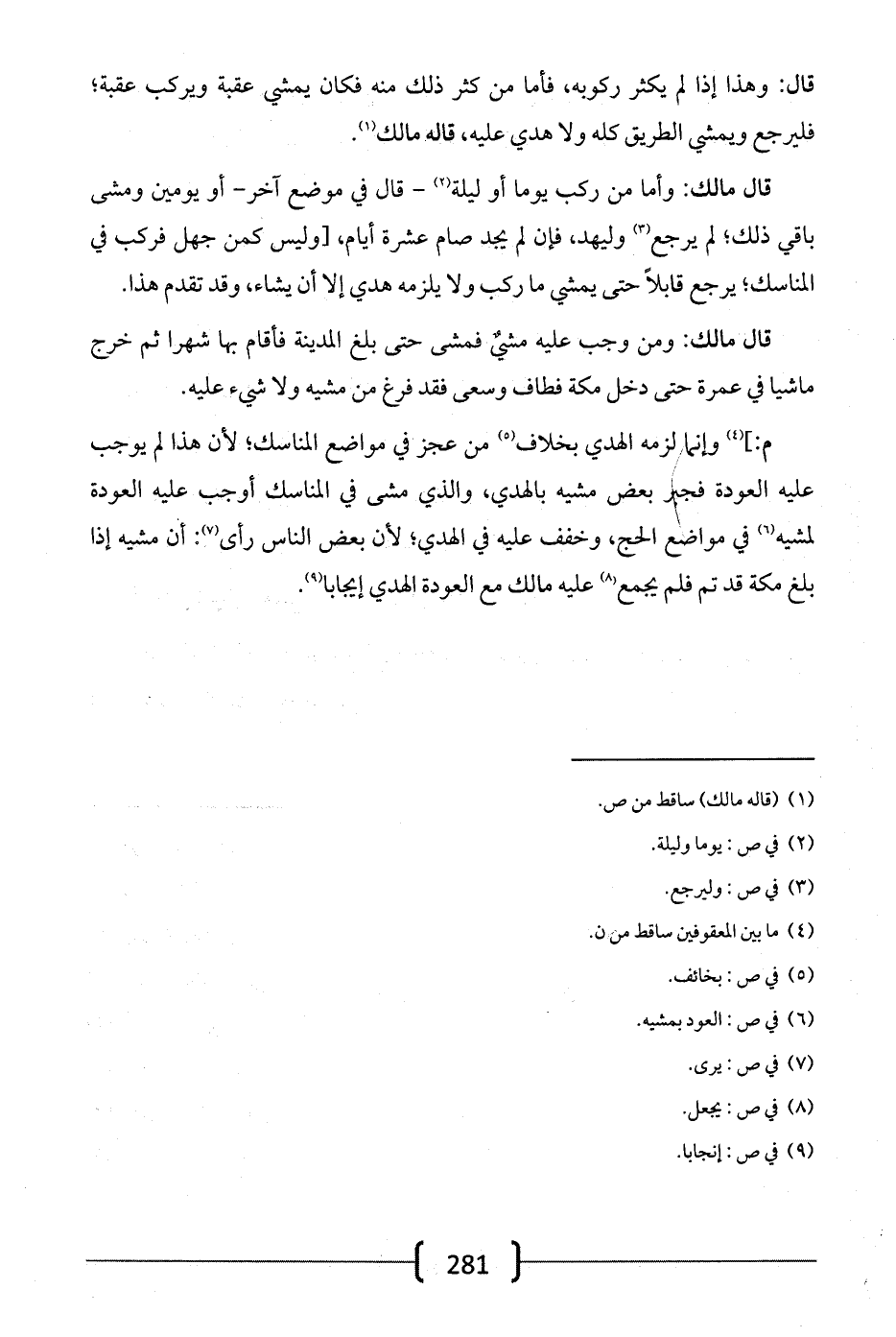 قال مالك: وأما من ركب يوماً أو ليلة -قال في موضع آخر- أو يومين ومشي باقي ذلك؛ لم يرجع وليهد، فإن لم يجد صام عشرة أيام، [وليس كمن جعل فركب في المناسك؛ يرجع قابلاً حتى يمشي ما ركب ولا يلزمه هدي إلا أن يشاء، وقد تقدم هذا.