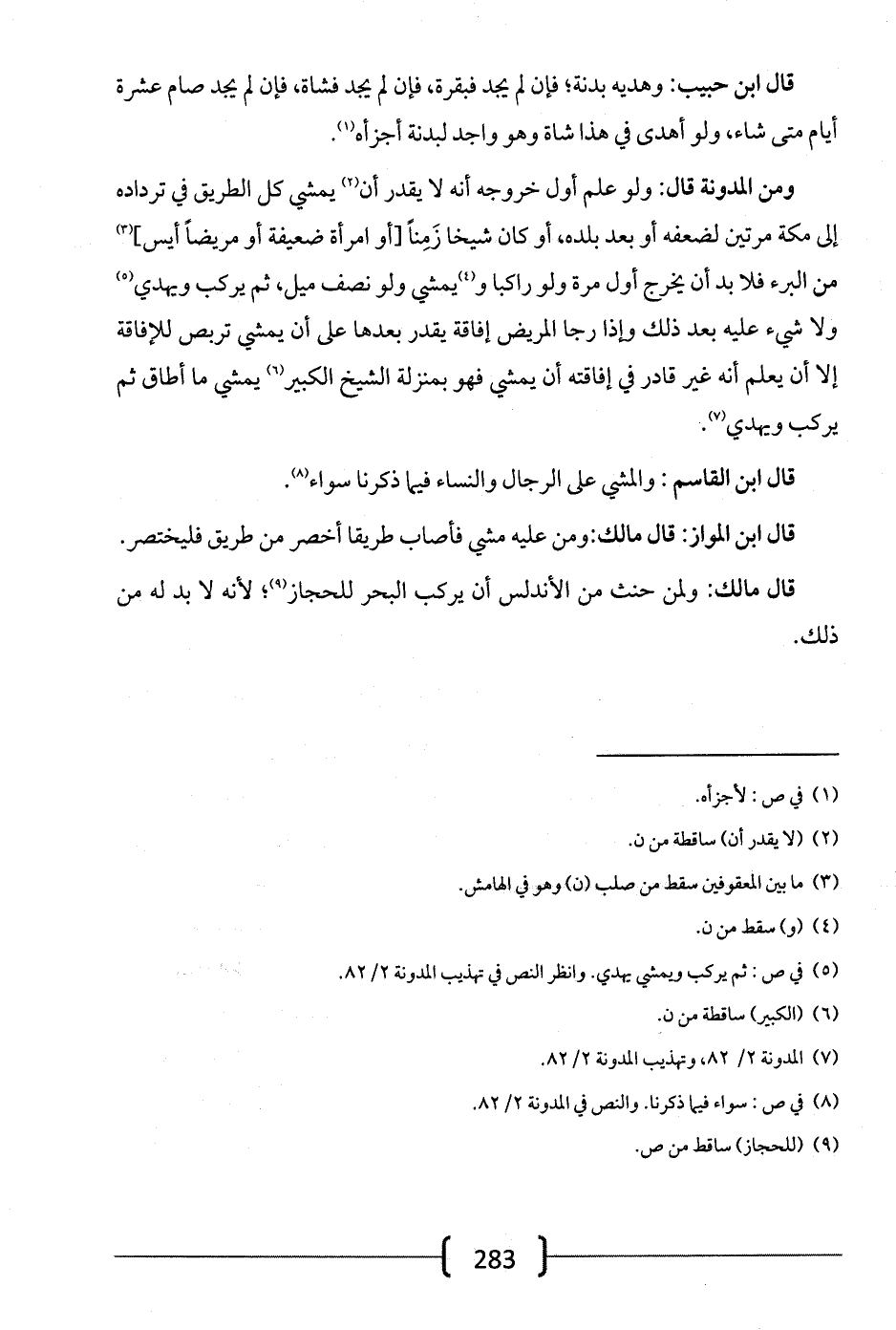 قال ابن القاسم: والمشي على الرجال والنساء فيما ذكرنا سواء.