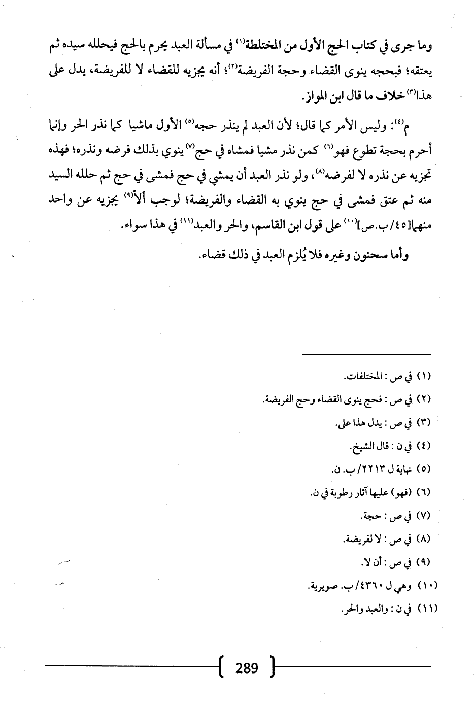 وما جرى في كتاب الحج الأول من المختلطة في مسألة العبد يحرم بالحج فيحلله سيده ثم يعتقه؛ فبحجة ينوي القضاء وحجة الفريضة؛ أنه يجزيه للقضاء لا للفريضة، يدل على هذا خلاف ما قال ابن المواز: