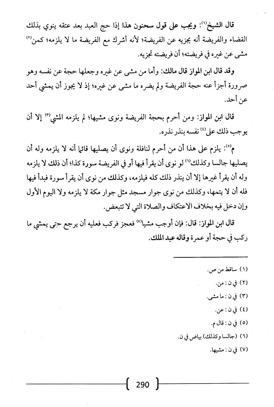 م: يلزم على هذا أن من أحرم لنافلة ونوى أن يصليها قائماً أنه لا يلزمه وله أن يصليها جالساً وكذلك لو نوى أن يقرأ فيها أو في الفريضة سورة كذا؛ أن ذلك لا يلزمه وله أن يقرأ غيرها إلا أن ينذر ذلك كله فيلزمه، وكذلك من نوى أن يقرأ سورة فبدأ فيها فله أن لا يتمها، وكذلك من نوى جوار مسجد مثل جوار مكة لا يلزمه ولا اليوم الأول وإن دخل فيه بخلاف الاعتكاف والصلاة التي لا تتبعض.