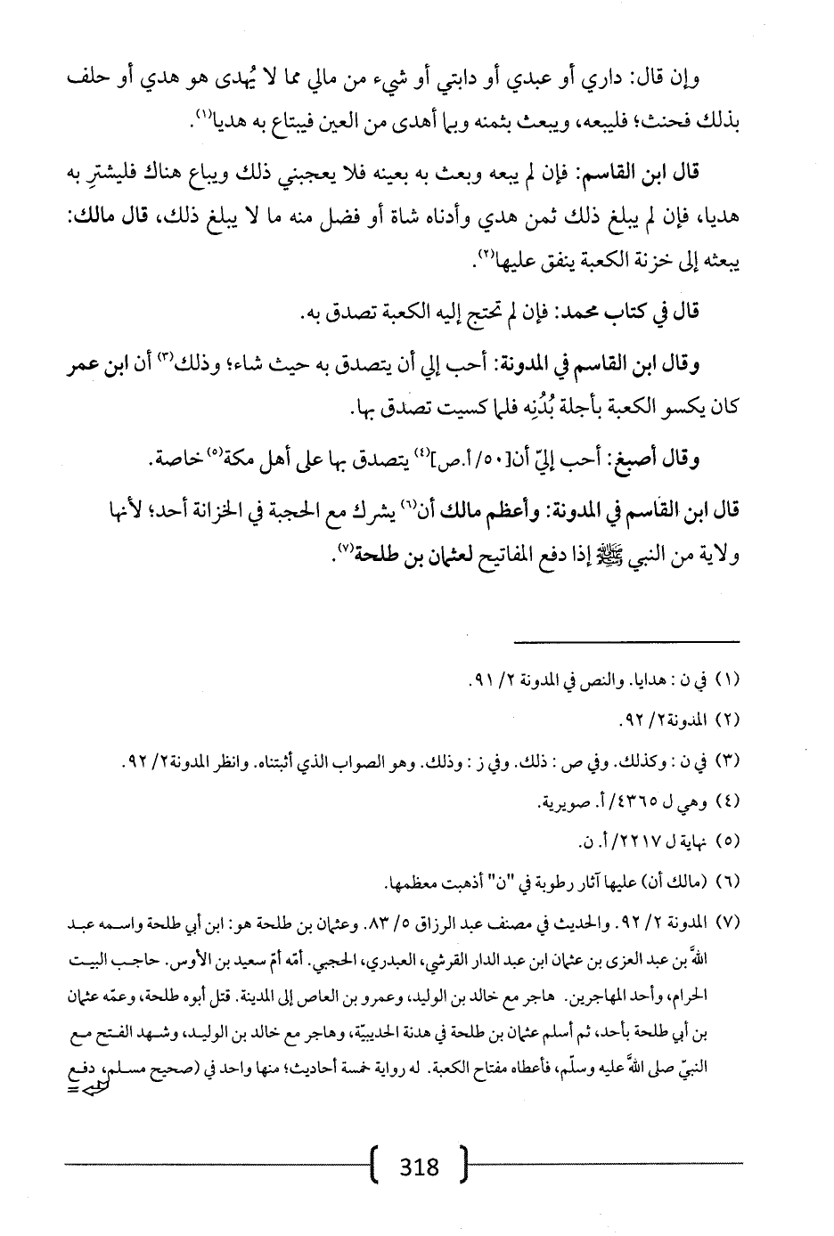 قال ابن القاسم في المدونة: وأعظم ملك أن يشرك مع الحجبة في الخزانة أحد؛ لأنها ولاية من النبي -صلى الله عليه وسلم- إذا دفع المفاتيح لعثمان بن طلحة.