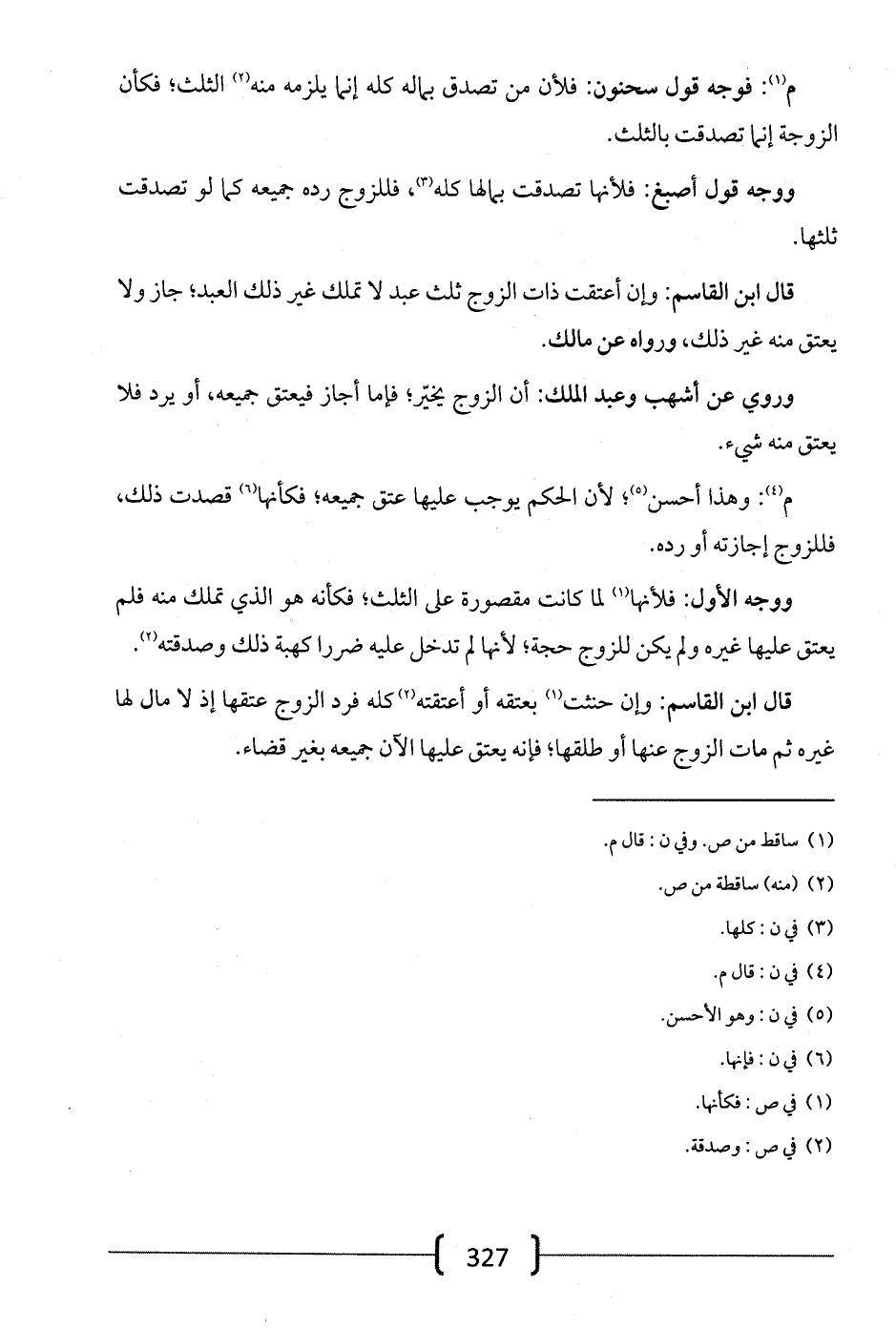 م: فوجه قول سحنون: فلأن من تصدق بماله كله إنما يلزمه منه الثلث؛ فكأن الزوجة إنما تصدقت بالثلث.