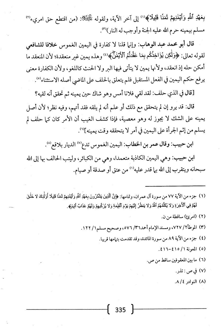 بِعَهْدِ اللَّهِ وَأَيْمَانِهِمْ ثَمَنًا قَلِيلًا} إلى آخر الآية، ولقوله -عليه السلام-: (من اقتطع حق امرئ مسلم بيمينه حرم الله عليه الجنة وأوجب له النار).