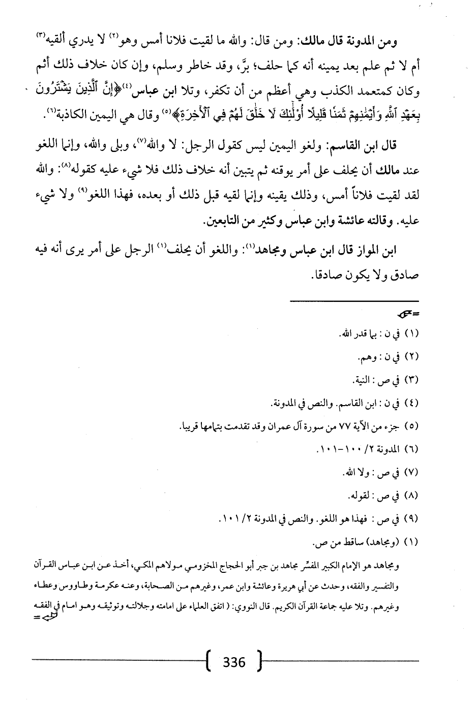 ابن المواز قال ابن عباس ومجاهد: واللغو أن يحلف الرجل على أمر يرى أنه فيه صادق ولا يكون صادقاً.