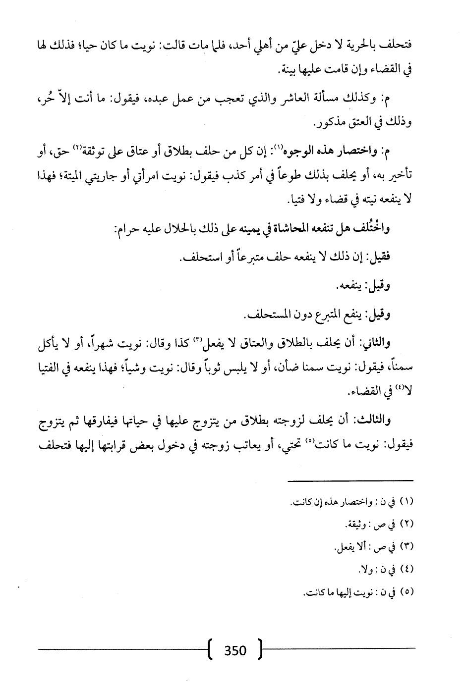 م: واختصار هذه الوجوه: إن كل من حلف بطلاق أو عتاق على توثقه حق، أو تأخير به، أو يحلف بذلك طوعاً في أمر كذب فيقول: نويت امرأتي أو جاريتي الميتة؛ فهذا لا ينفعه نيته في قضاء ولا فتيا.