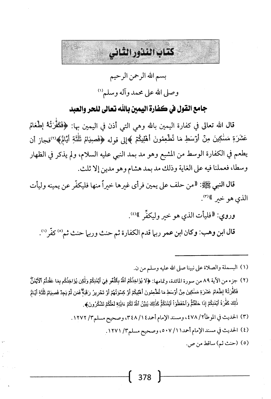 جامع القول في كفارة اليمين بالله تعالى للحر والعبد