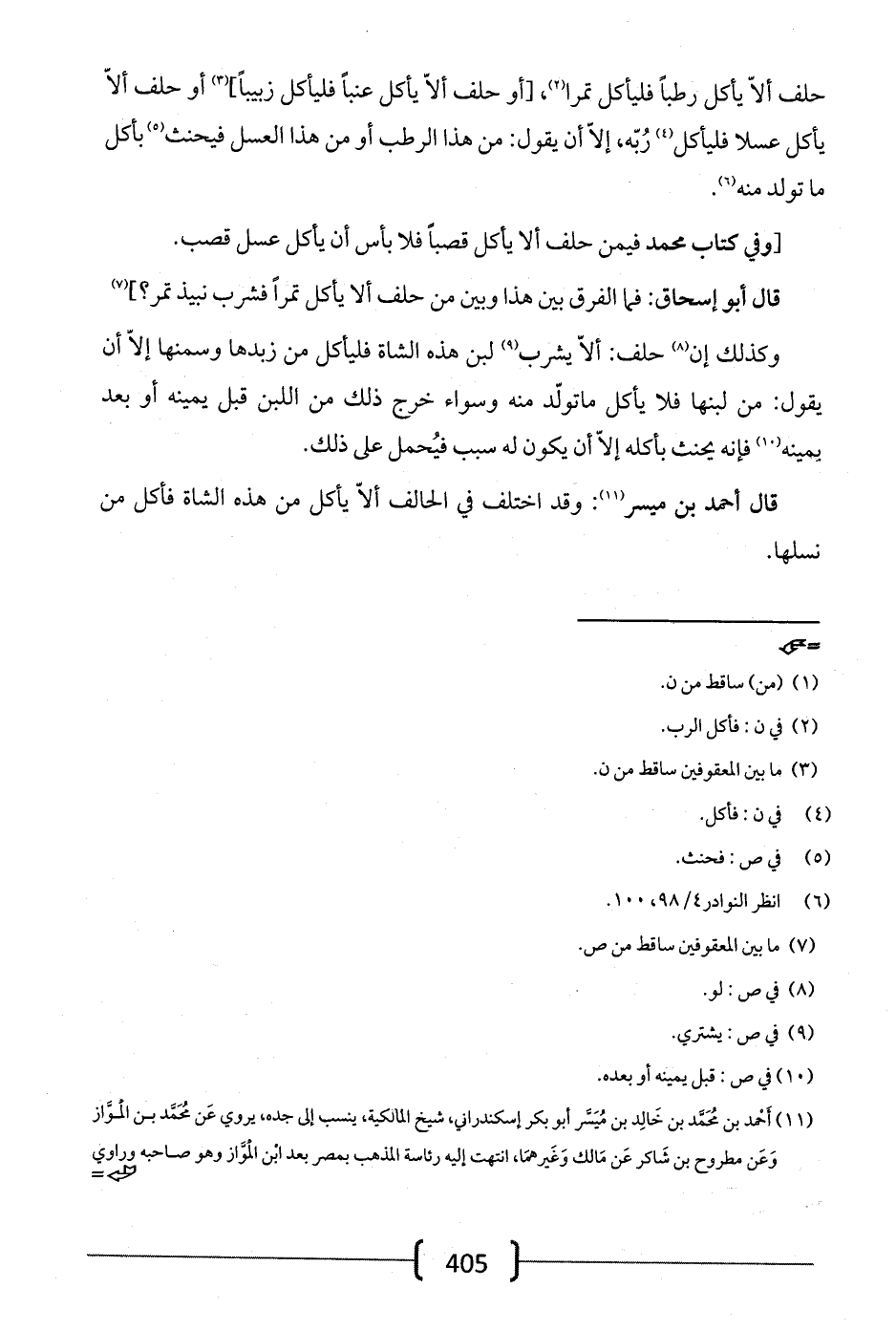 قال أحمد بن ميسر: وقد اختلف في الحالف ألا يأكل من هذه الشاة فأكل من نسلها.