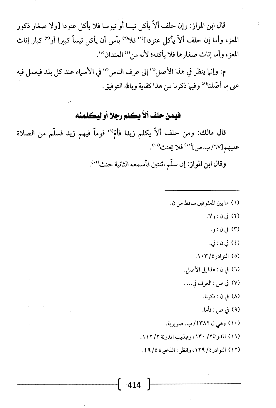 قال ابن المواز: وإن حلف ألا يأكل تيساً أو تيوساً فلا يأكل عتوداً [ولا صغار ذكور المعز، وأما إن حلف ألا يأكل عتوداً] فلا بأس أن يأكل تيساً كبيراً أو كبار إناث المعز، وأما إناث صغارها فلا يأكله؛ لأنه من العتدان.