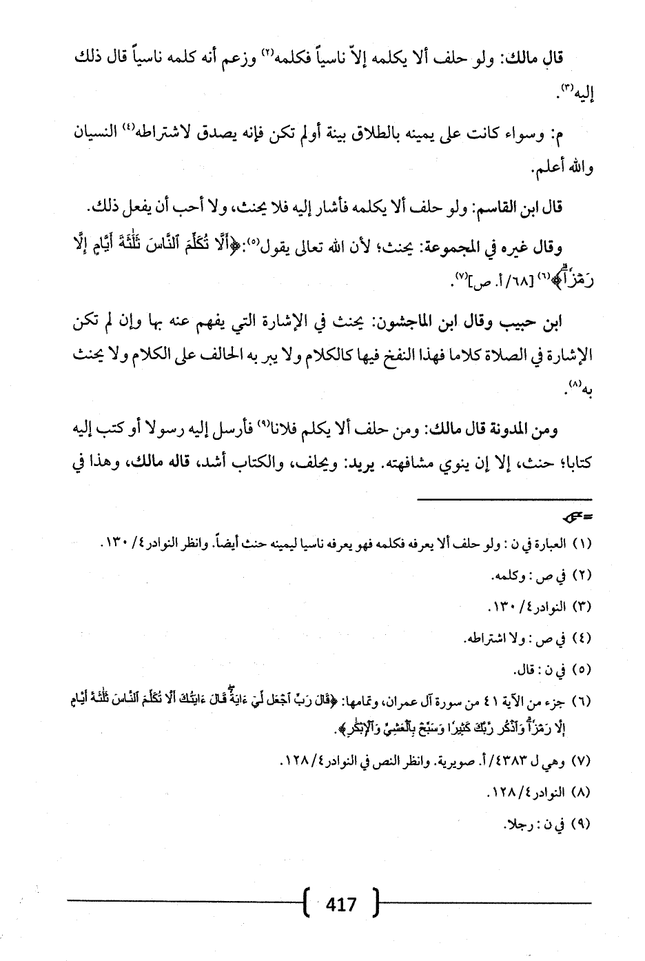 وقال غيره في المجموعة: يحنث؛ لأن الله تعالى يقول: {أَلَّا تُكَلِّمَ النَّاسَ ثَلاثَةَ أَيَّامٍ إِلَّا رَمْزًا}.