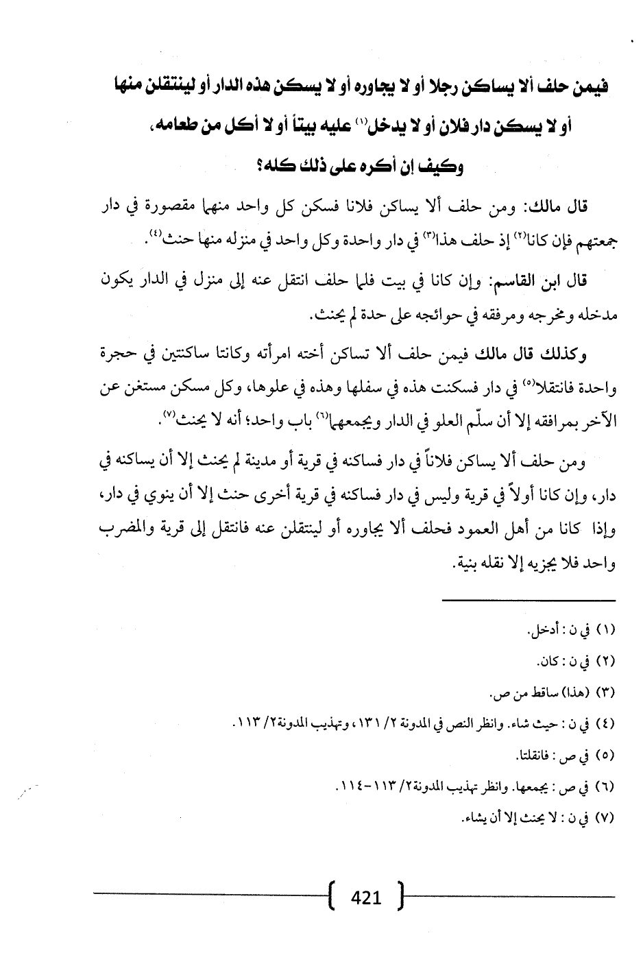 قال ابن القاسم: وإن كانا في بيت فلما حلف انتقل عنه إلى منزل في الدار يكون مدخله ومخرجه ومرفقه في حوائجه على حدة لم يحنث.