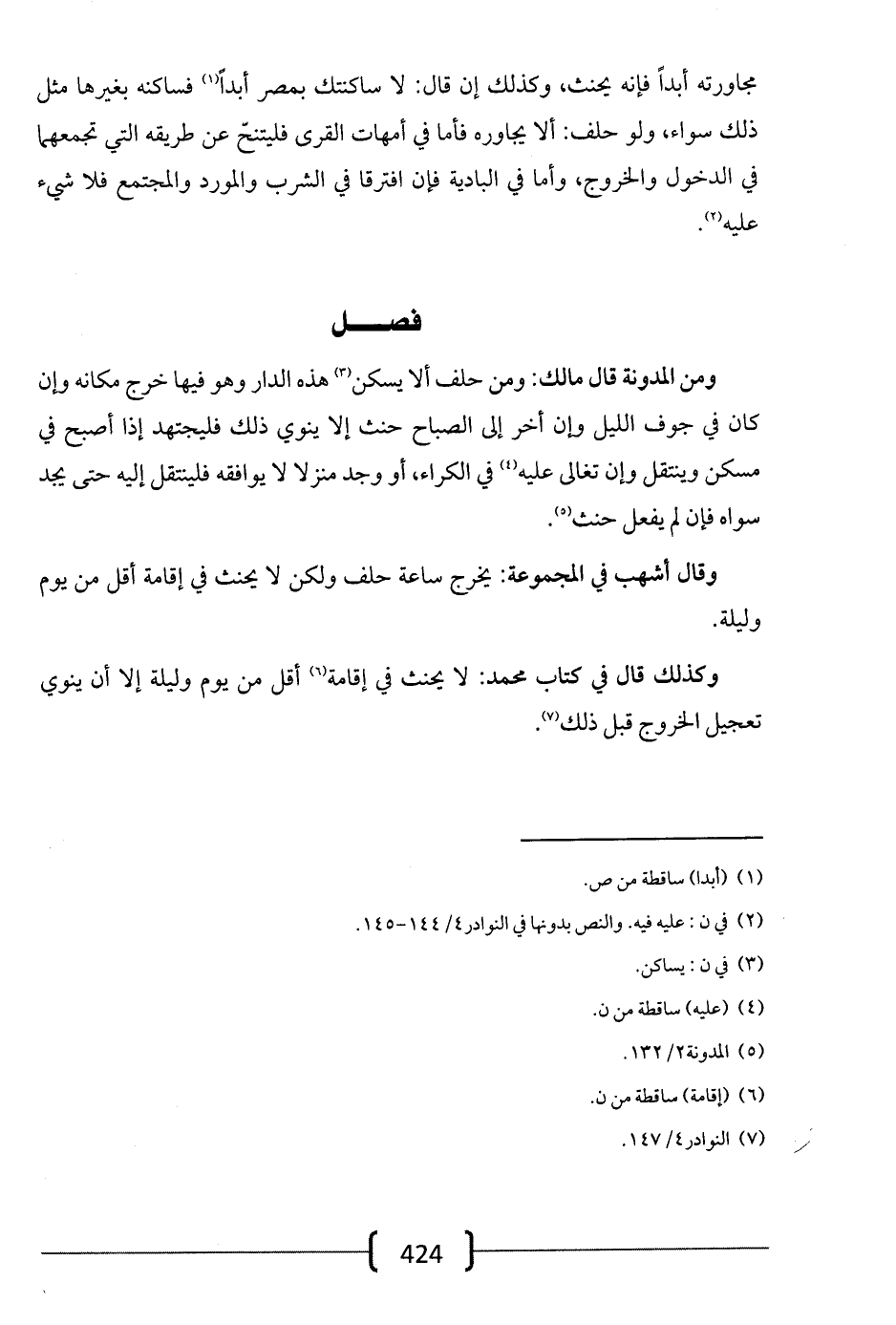 مجاورته أبداً فإنه يحنث، وكذلك إن قال: لا ساكنتك بمصر أبداً فساكنه بغيرها مثل ذلك سواء، ولو حلف: ألا يجاوره فأما في أمهات القرى فليتنح عن طريقه التي تجمعهما في الدخول والخروج، وأما في البادية فإن افترقا في الشرب والمورد والمجتمع فلا شيء عليه.