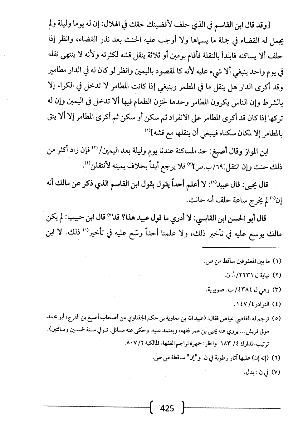 قال يحيى: قل عبيد: لا أعلم أحداً يقول بقول ابن القاسم الذي ذكر عن مالك أنه إن لم يخرج ساعة حلف أنه حانث.
