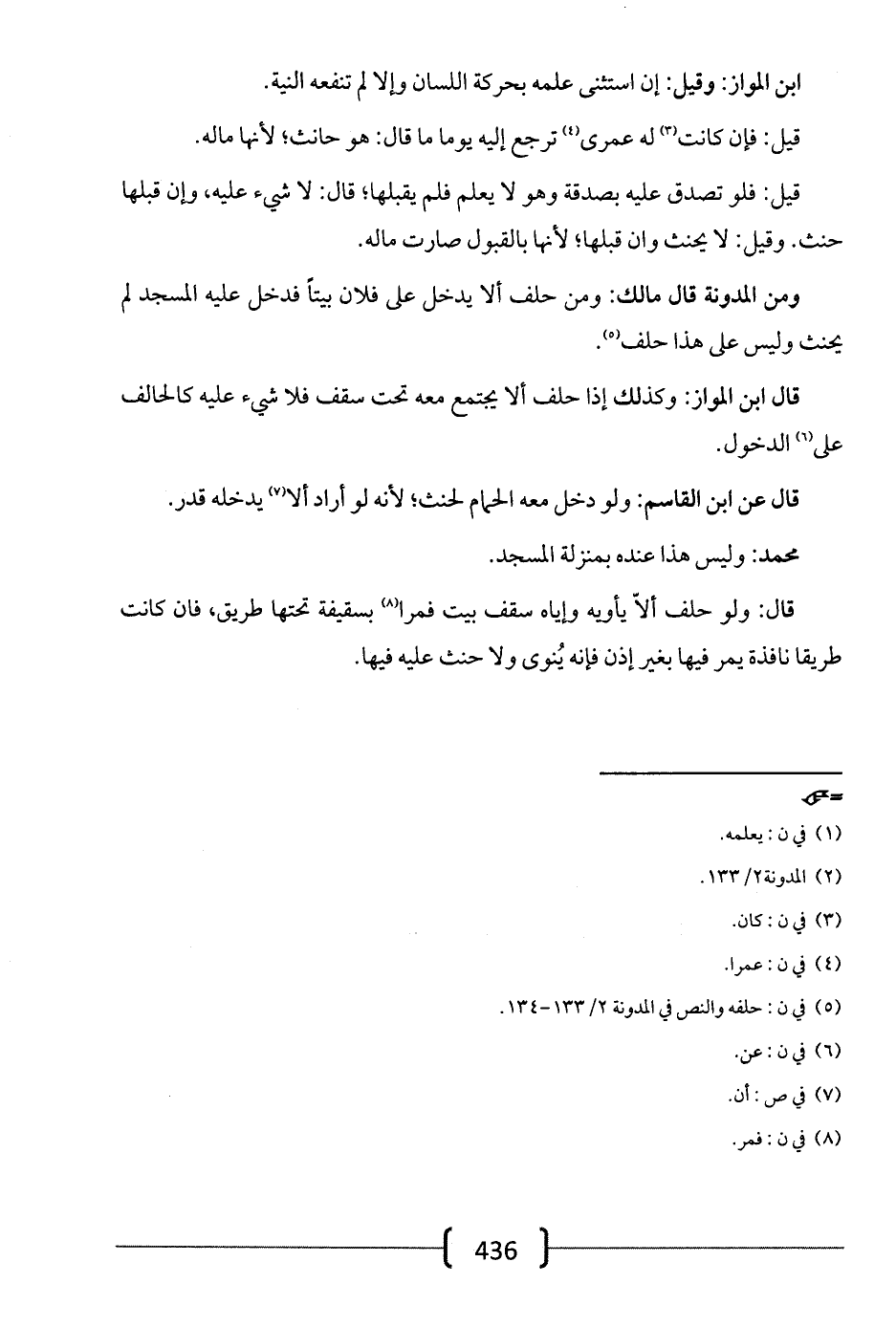 ابن المواز: وقيل: إن استثنى علمه بحركة اللسان وإلا لم تنفعه النية.