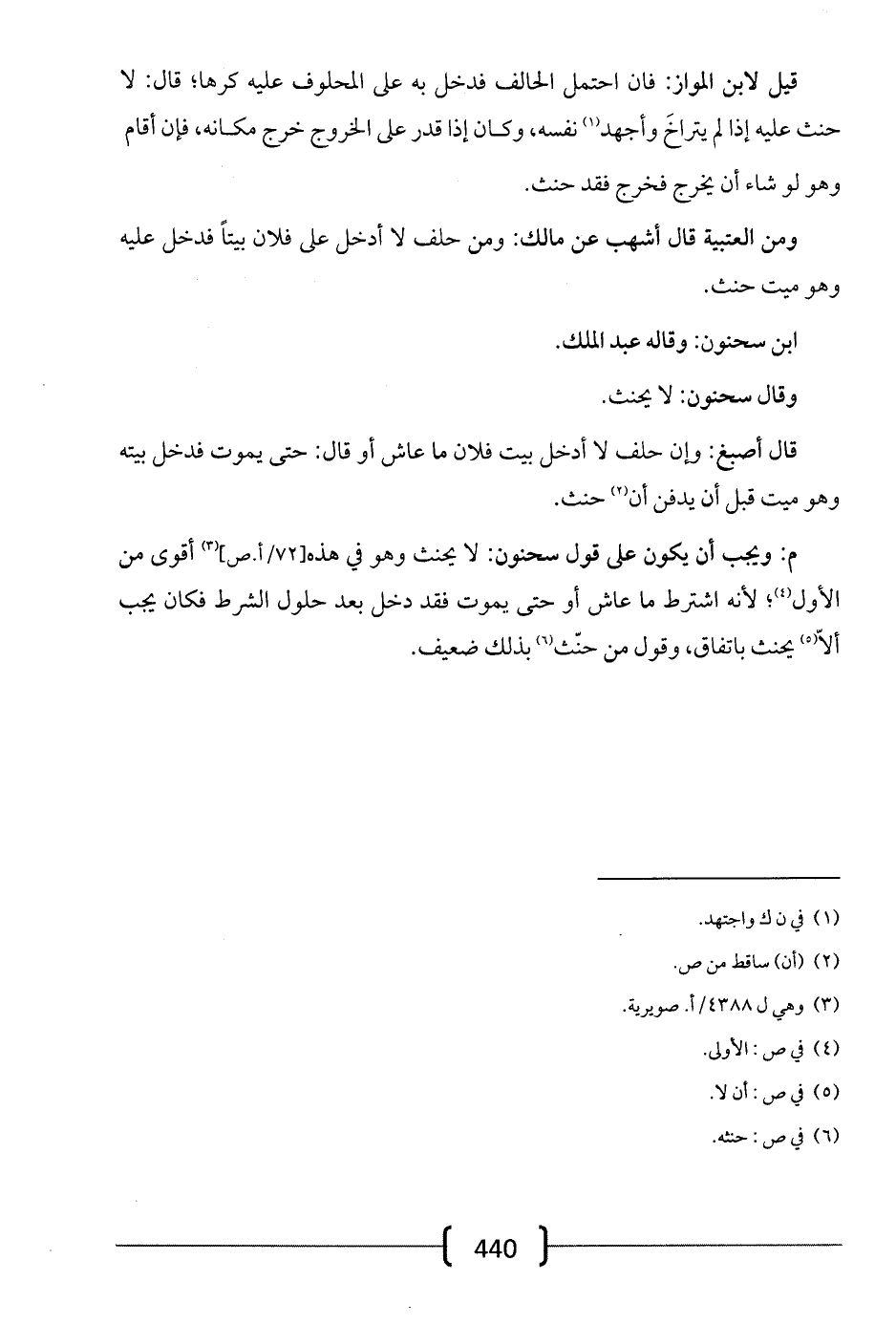وقال سحنون: لا يحنث.