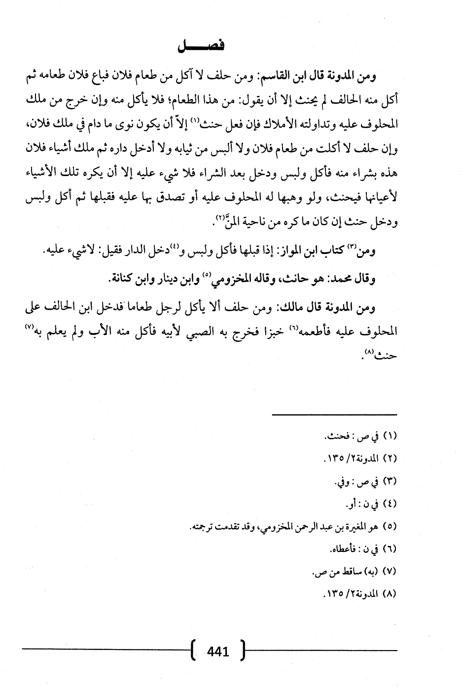 ومن المدونة قال ابن القاسم: ومن حلف لا آكل من طعام فلان فباع فلان طعامه ثم أكل منه الحالف لم يحنث إلا أن يقول: من هذا الطعام؛ فلا يأكل منه وإن خرج من ملك المحلوف عليه وتداولته الأملاك فإن فعل حنث إلا أن يكون نوى ما دام في ملك فلان، وإن حلف لا أكلت من طعام فلان ولا ألبس من ثيابه ولا أدخل داره ثم ملك أشياء فلان هذه بشراء منه فأكل ولبس ودخل بعد الشراء فلا شيء عليه إلا أن يكره تلك الأشياء لأعيانها فيحنث، ولو وهبها له المحلوف عليه أو تصدق بها عليه فقبلها ثم أكل ولبس ودخل حنث إن كان ما كره من ناحية المن.