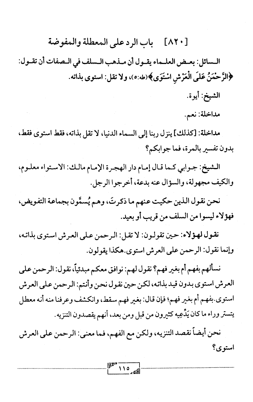 [820] باب الرد على المعطلة والمفوضة
