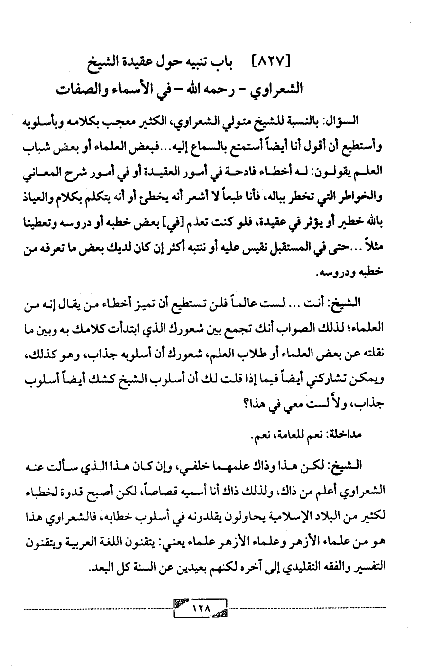 الشيخ: لكن هذا وذاك علمهما خلفي، وإن كان هذا الذي سألت عنه الشعراوي أعلم من ذاك، ولذلك ذاك أنا أسميه قصاصاً، لكن أصبح قدوة لخطباء لكثير من البلاد الإسلامية يحاولون يقلدونه في أسلوب خطابه، فالشعراوي هذا هو من علماء الأزهر وعلماء الأزهر علماء يعني: يتقنون اللغة العربية ويتقنون التفسير والفقه التقليدي إلى آخره لكنهم بعيدين عن السنة كل البعد.