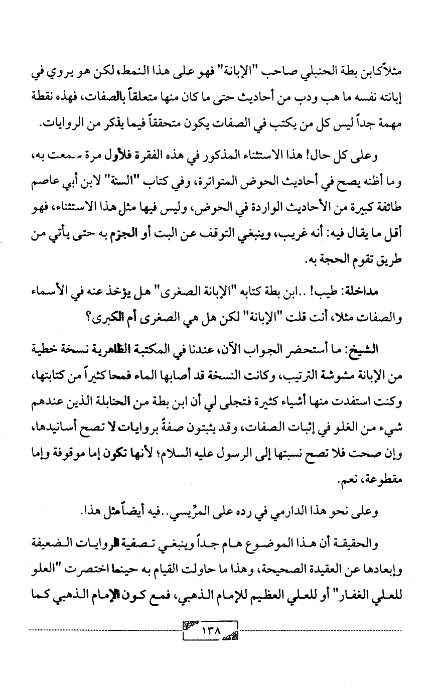 مداخلة: طيب! .. ابن بطة كتابه "الإبانة الصغرى" هل يؤخذ عنه في الأسماء والصفات مثلا، أنت قلت "الإبانة" لكن هل هي الصغرى أم الكبرى؟