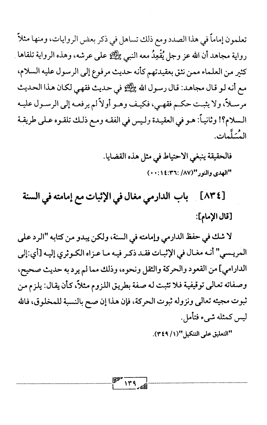 [834] باب الدارمي مغال في الإثبات مع إمامته في السنة