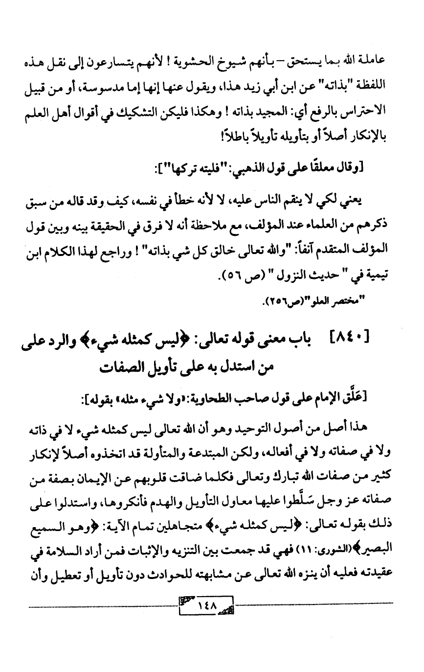 [840] باب معنى قوله تعالى: {ليس كمثله شيء} والرد على من استدل به على تأويل الصفات