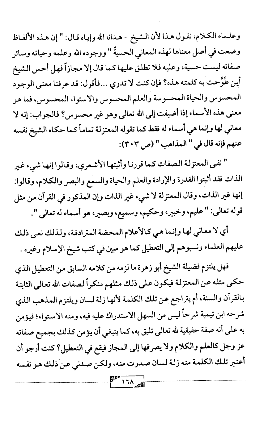 فهل يلتزم فضيلة الشيخ أبو زهرة ما لزمه من كلامه السابق من التعطيل الذي حكى مثله عن المعتزلة فيكون على ذلك مثلهم منكراً لصفات الله تعالى الثابتة بالقرآن والسنة، أم يتراجع عن تلك الكلمة لأنها زلة لسان ويلتزم المذهب الذي شرحه ابن تيمية شرحاً ليس من السهل الاستدراك عليه فيه، ومنه الاستواء؛ فيؤمن به على أنه صفة حقيقية لله تعالى تليق به، كما ينبغي أن يؤمن كذلك بجميع صفاته عز وجل كالعلم والكلام ولا يصرفها إلى المجاز فيقع في التعطيل؟ كنت أرجو أن أعتبر تلك الكلمة منه زلة لسان صدرت منه، ولكن صدني عن ذلك هو نفسه
