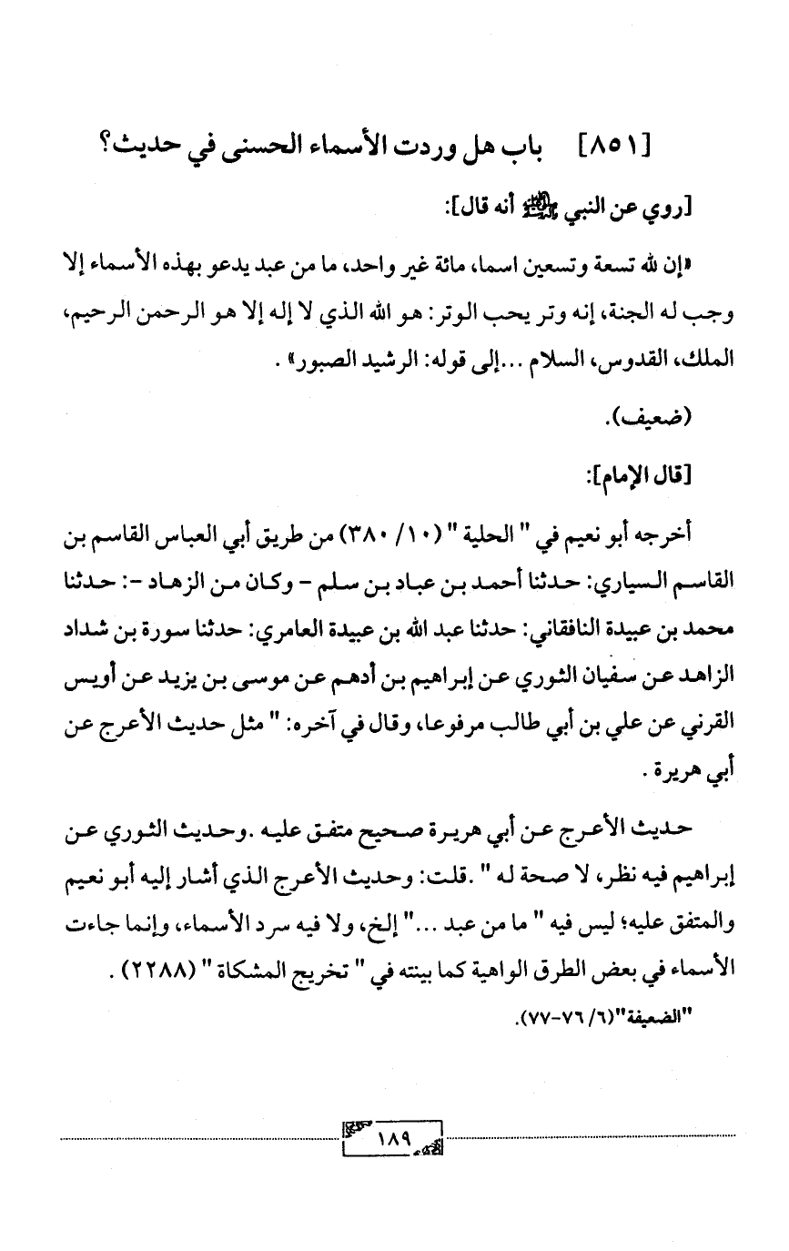 [851] باب هل وردت الأسماء الحسنى في حديث؟