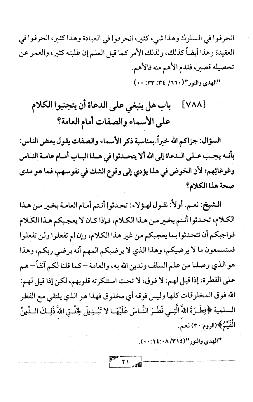 [788] باب هل ينبغي على الدعاة أن يتجنبوا الكلام