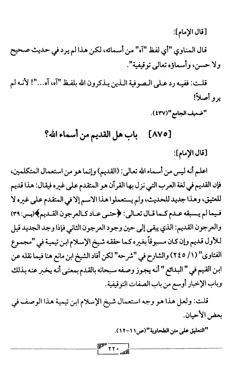 [875] باب هل القديم من أسماء الله؟
