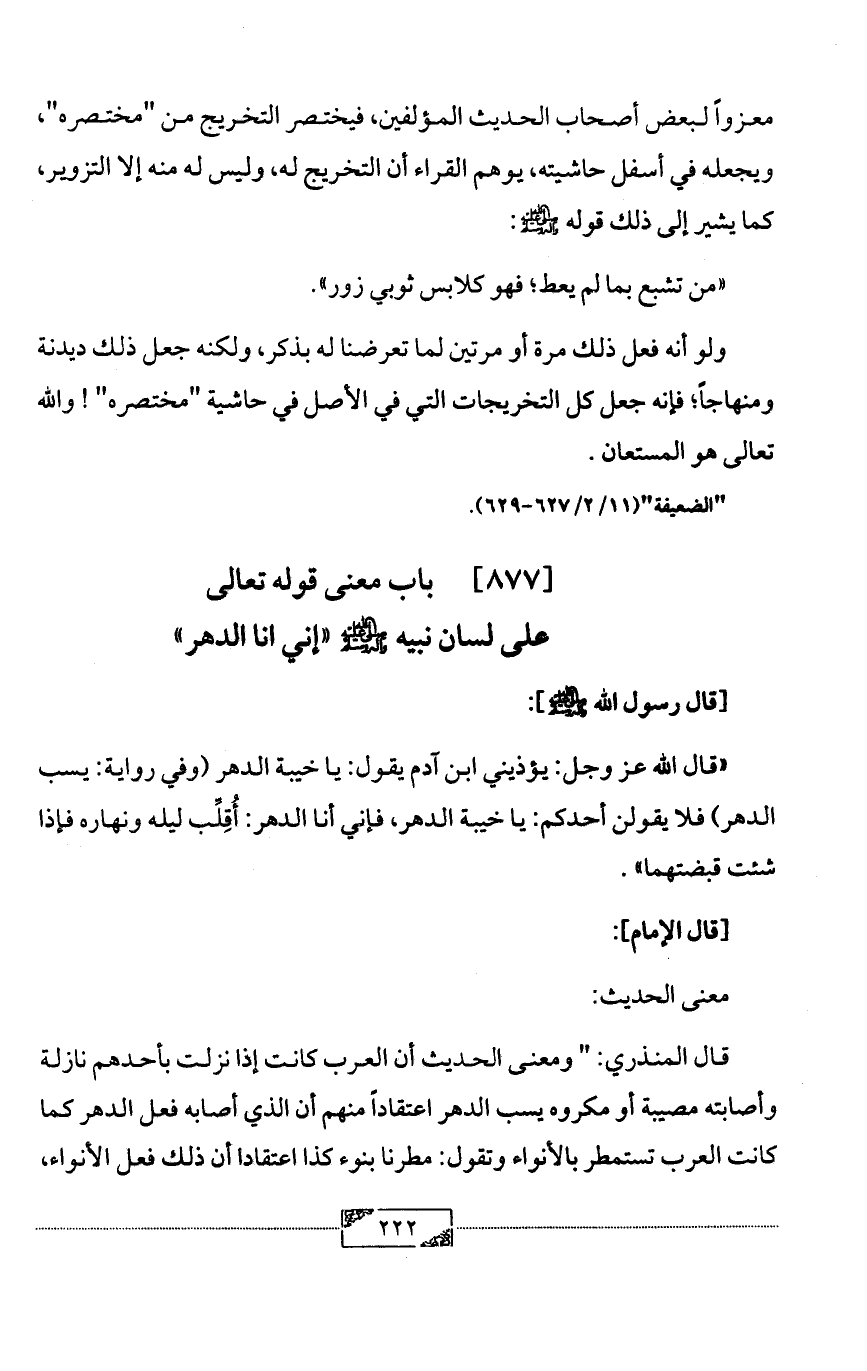 «قال الله عز وجل: يؤذيني ابن آدم يقول: يا خيبة الدهر (وفي رواية: يسب الدهر) فلا يقولن أحدكم: يا خيبة الدهر، فإني أنا الدهر: أُقِلِّب ليله ونهاره فإذا شئت قبضتهما».