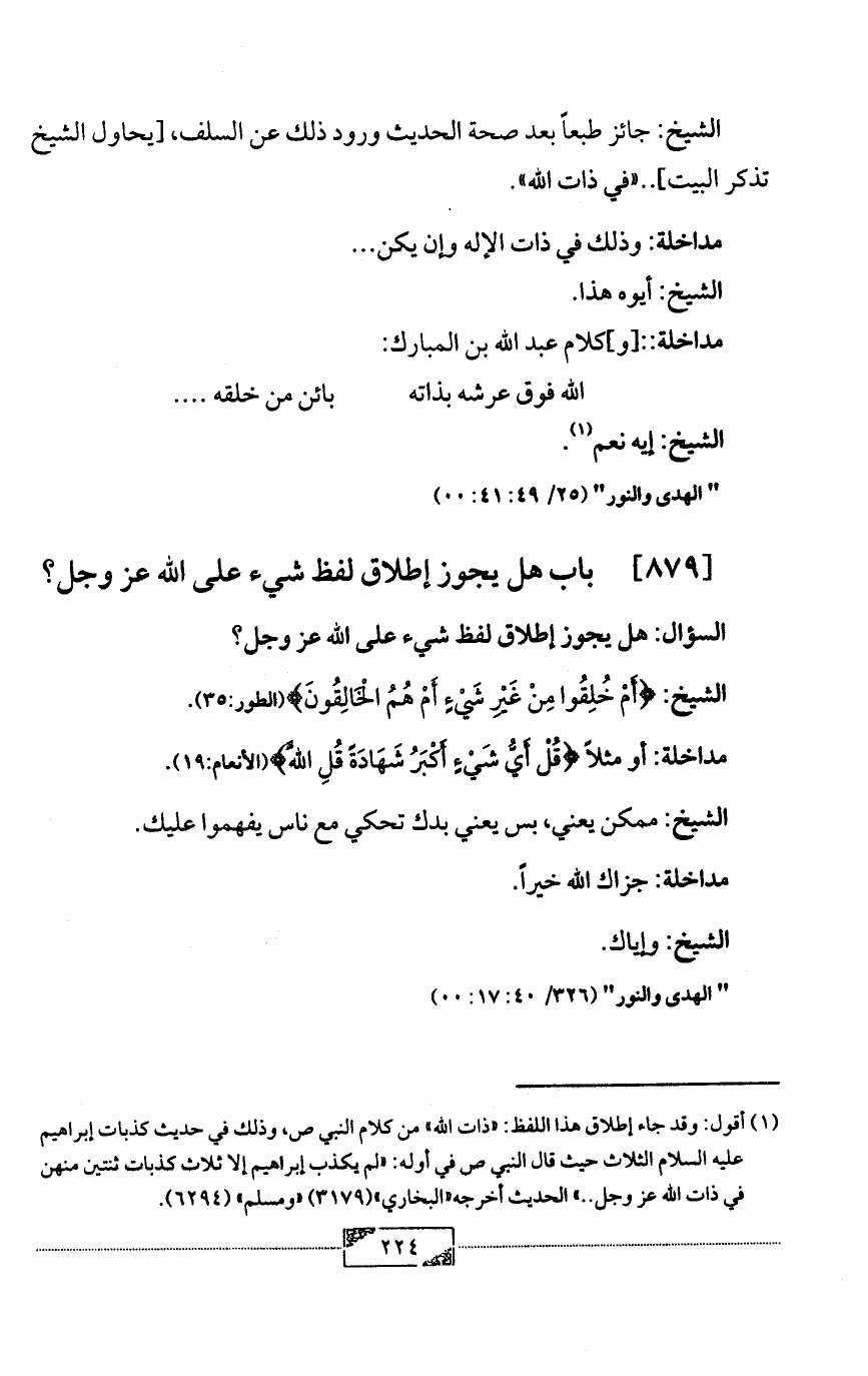 [879] باب هل يجوز إطلاق لفظ شيء على الله عز وجل؟