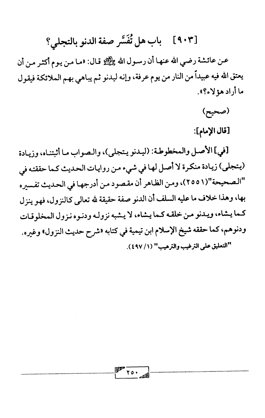 [903] باب هل تُفَسَّر صفة الدنو بالتجلي؟
