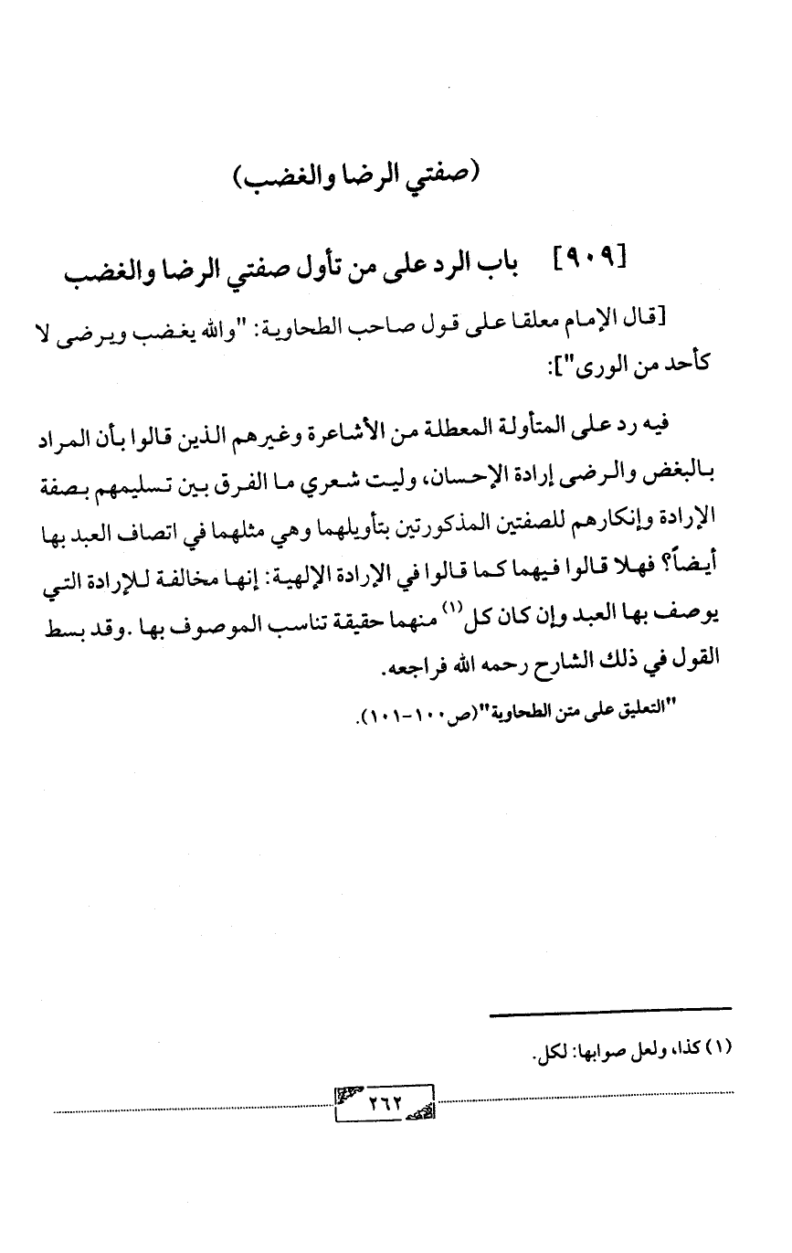[909] باب الرد على من تأول صفتي الرضا والغضب