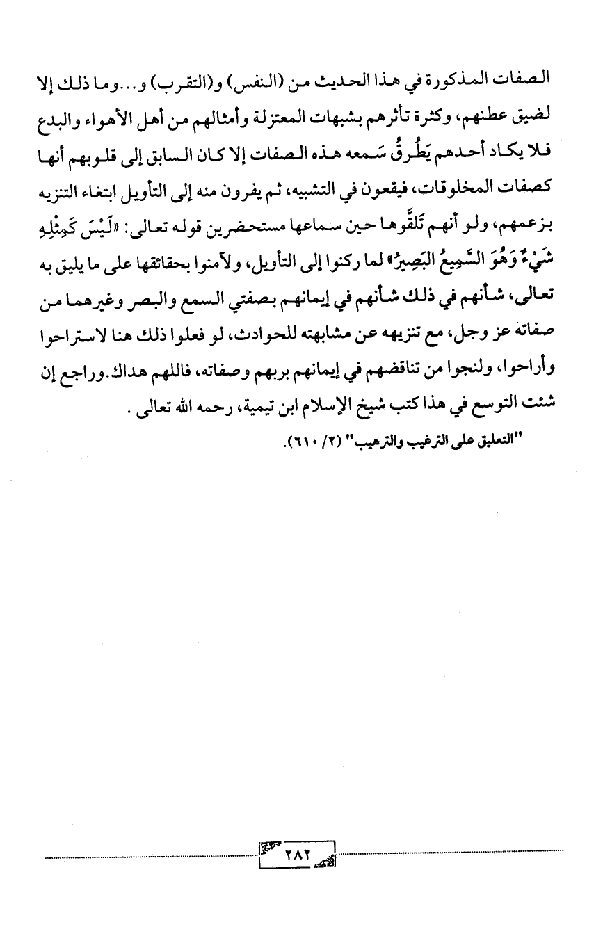 الصفات المذكورة في هذا الحديث من (النفس) و (التقرب) و ... وما ذلك إلا لضيق عطنهم، وكثرة تأثرهم بشبهات المعتزلة وأمثالهم من أهل الأهواء والبدع فلا يكاد أحدهم يَطُرقُ سَمعه هذه الصفات إلا كان السابق إلى قلوبهم أنها كصفات المخلوقات، فيقعون في التشبيه، ثم يفرون منه إلى التأويل ابتغاء التنزيه بزعمهم، ولو أنهم تَلقَّوها حين سماعها مستحضرين قوله تعالى: «لَيْسَ كَمِثْلِهِ شَيْءٌ وَهُوَ السَّمِيعُ البَصِيرُ» لما ركنوا إلى التأويل، ولآمنوا بحقائقها على ما يليق به تعالى، شأنهم في ذلك شأنهم في إيمانهم بصفتي السمع والبصر وغيرهما من صفاته عز وجل، مع تنزيهه عن مشابهته للحوادث، لو فعلوا ذلك هنا لاستراحوا وأراحوا، ولنجوا من تناقضهم في إيمانهم بربهم وصفاته، فاللهم هداك. وراجع إن شئت التوسع في هذا كتب شيخ الإسلام ابن تيمية، رحمه الله تعالى.