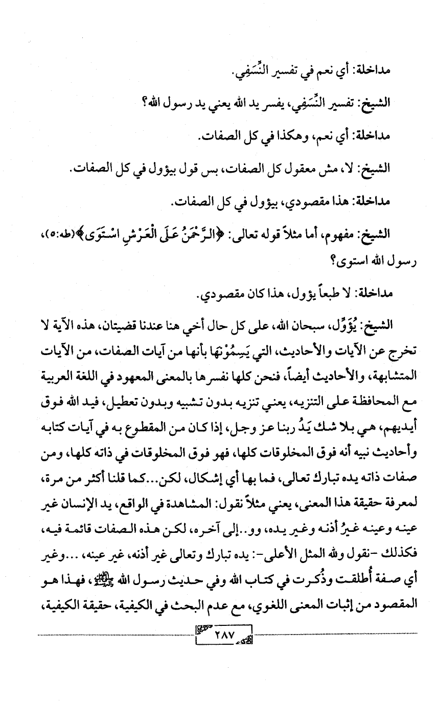 الشيخ: لا، مش معقول كل الصفات، بس قول بيؤول في كل الصفات.