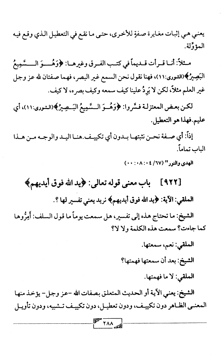 الشيخ: ما تحتاج هذه إلى تفسير، هل سمعت يوماً ما قول السلف: أَمِرُّوها كما جاءت؟ سمعت هذه الكلمة ولا لا؟